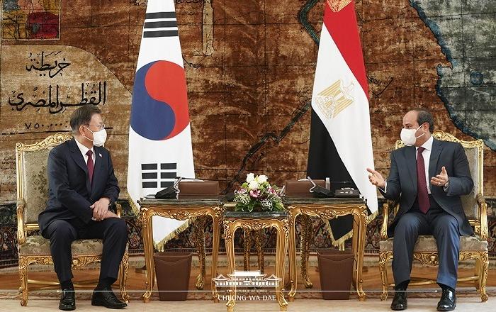 이집트를 공식 방문 중인 문재인 대통령은 20일(현지시간) 압델 파타 알시시 이집트 대통령과 정상회담을 갖고 양국 간 미래지향적이고 지속가능한 협력 증진 방안, 한반도와 중동 지역 정세, 글로벌 이슈 등에 대해 폭넓은 의견을 교환했다.문 대통령의 이집트 방문은 우리 정