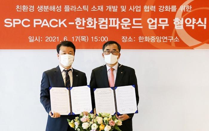한화컴파운드가 SPC그룹의 포장재 생산 계열사인 SPC팩(Pack)과 친환경 소재의 개발 및 적용에 나선다.한화솔루션의 100% 자회사인 한화컴파운드와 SPC팩은 토양에서 쉽게 분해되는 PLA(Poly Lactic Acid) 기반의 친환경 플라스틱 소재를 공동 개발해