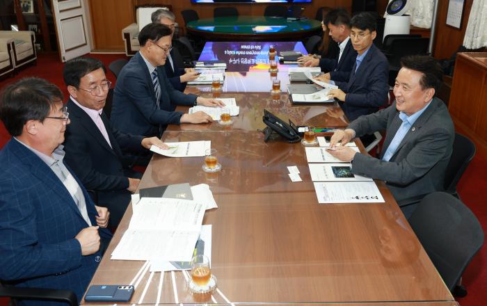 김영환 충북지사는 13일 김문근 단양군수, 단양에 위치한 시멘트 생산 업체인 한일시멘트㈜, 성신양회㈜ 관계자들과 만나 버려지는 폐열을 스마트팜에 활용하는 방안을 논의했다. 이번 회담은 지난 4월 김 지사의 단양군 방문 시 시멘트 공장에서 나오는 폐열 활용을 강조한