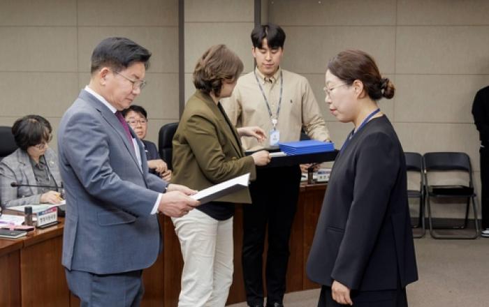 김영환 충북지사는 16일 구제역 조기종식을 위해 노력한 담당부서 직원들을 격려금 전달과 함께 격려했다. 이날 포상한 부서는 동물위생시험소와 본청 사회재난과(구제역 재난안전대책본부 운영), 동물방역과(거점소독소 운영 및 방역 실시) 등 3개 부서다. 김 지사는 “