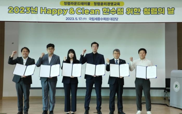 한국수목원정원관리원은 지난 17일 국립세종수목원 대강당에서 '2023년 Happy&Clean 한수정을 위한 청렴의 날'을 개최했다. 이번 행사는 구성원이 함께 만드는 행복하고(Happy) 투명한(Clean) 조직문화 실현을 위해 마련됐다. 이날 행사는 윤리경영방
