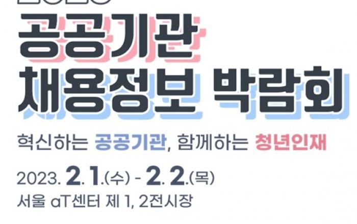 고용노동부는 2.20.(월) 부터 3.31.(금)까지 " 2023 대한민국 채용박람회"(온라인)를 개최, 특히 3.2.(목)~3.3.(금) 양일간은 aT센터 제1전시장(서울 서초구 강남대로 27)에서 오프라인 행사를 진행한다고 밝혔다. "2023 대한민국 채용박람회