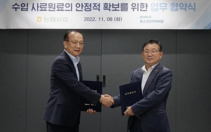 국내 사료 시장의 안정화와 공급망 위기에 맞서 민간기업과 농협산하 국내 최대 사료회사가 의기투합에 나선다.포스코인터내셔널(사장 주시보)과 농협사료(사장 정상태)는 8일 포스코인터내셔널 여인홍 전 농림수산식품부 차관, 서울사무소에서 김동환 농협경제지주 사외이사 등이 참석