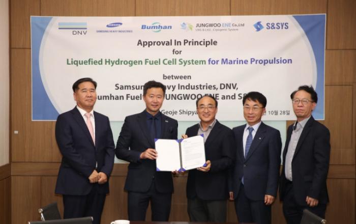 수소연료전지 및 수소충전소 전문 회사 범한퓨얼셀이 삼성중공업과 공동 연구를 통해 ‘액화수소 연료전지 선박 추진 시스템’ 개발에 성공, 노르웨이 선급인 DNV에서 AIP (Approval In Principle) 인증을 획득했다고 9일 밝혔다. 특히 이번 AIP 인증은