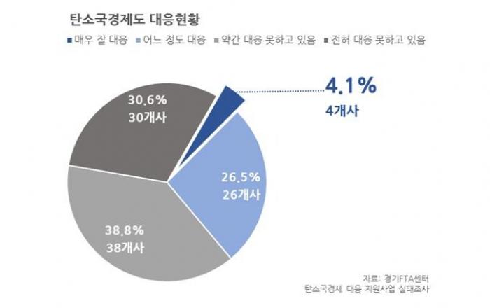 경기도 중소기업 10곳 중 7곳은 내년부터 실시되는 탄소국경조정제도에 제대로 대응하지 못하고 있어 전문교육 등 맞춤형 지원이 필요한 것으로 조사됐다.경기도와 경기지역FTA활용지원센터(이하 경기FTA센터)는 ‘환경·사회·지배구조(ESG)경영 및 탄소국경세’ 교육 참여기업