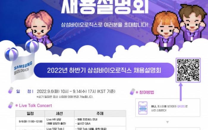 삼성바이오로직스가 2022년 하반기 채용설명회를 메타버스로 진행한다. 9월 6일(화)부터 14일(수)까지 9일간 열리는 이번 설명회에는, 지원자들이 삼성바이오로직스의 비즈니스와 직무 등에 대한 궁금증을 해소할 수 있도록 다양한 콘텐츠가 마련됐다.삼성바이오로직스는 3월