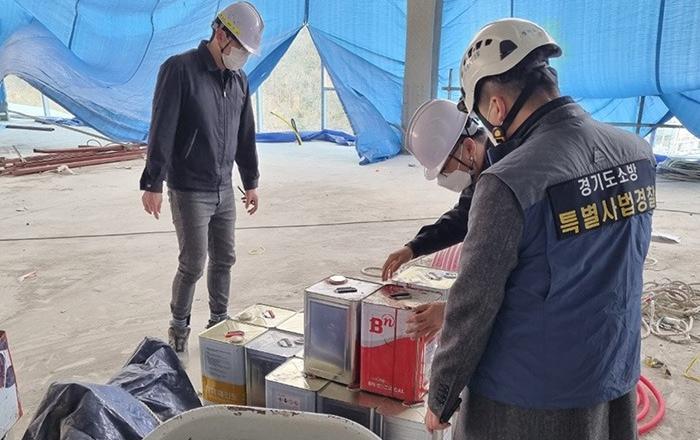 허가받지 않은 위험물을 대량으로 저장하거나 임시 소방시설 없이 용접 작업을 하는 등 화재 안전불감증 대형공사장들이 경기도 소방재난본부 특별사법경찰에 줄줄이 적발됐다.경기도 소방재난본부 특사경은 지난 1~3월까지 경기지역 연면적 3,000㎡ 이상 신축공사장 678개소를