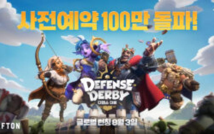 ㈜크래프톤이 독립 스튜디오 라이징윙스의 실시간 전략 디펜스 모바일 게임 ‘디펜스 더비(Defense Derby)’가 사전예약자 수 100만을 돌파했다고 밝혔다. 디펜스 더비는 라이징윙스가 약 2년간 개발한 신작 모바일 게임으로, 지난달 14일부터 공식 웹사이트 및 구글