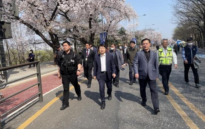 서울특별시 자치경찰위원회 는 지난 3월 31일, 4월 3일 2차례에 걸쳐 “여의도 벚꽃축제로 대규모 인파가 몰릴 것으로 예상되는 여의도 윤중로 일대의 인파 안전관리 상황을 점검했다고 밝혔다. 영등포 여의도 봄꽃축제는 대표적인 지역 봄 축제로 4월 4일부터 4월