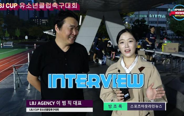 [LBJ AGENCY 이범직 대표 인터뷰.방초록 아나운서]전 프로축구선수이자 현재 LBJ AGENCY 대표로 활동하고 있는 이범직 대표가 주최하는 "LBJ CUP 유소년 축구대회"가 60여개 팀이 참가한 가운데 지난 10월3일 개최되었다.비가 흩날리는 궂은 날씨에도 불