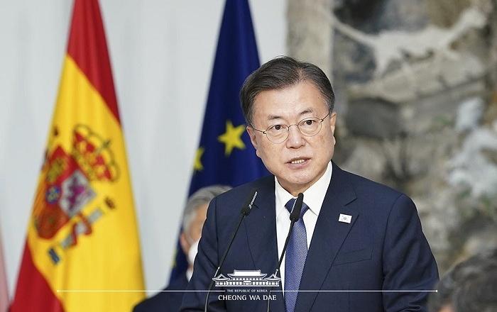 스페인을 국빈 방문 중인 문재인 대통령은 16일 오후(현지시간) “이제 협력을 잘하는 나라가 세계의 주인공이 되고, 디지털·그린 경제에서 앞서가는 나라가 세계 경제를 이끌게 될 것”이라며 “스페인과 한국이 먼저 시작하자”고 말했다.문 대통령은 이날 바르셀로나에서 열린