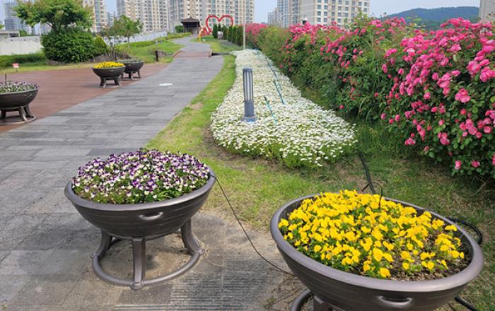 행정안전부 정부청사관리본부는 9일 정부세종청사 9~13동 구간 옥상정원을 새롭게 정비해 오는 10일부터 25일까지 매주 주말 동안 시범 운영한다고 밝혔다. 이번에 새롭게 조성한 9~13동 구간 옥상정원에는 기후변화 대응을 위한 정부 탄소중립 정책에 발맞춰 온실가스