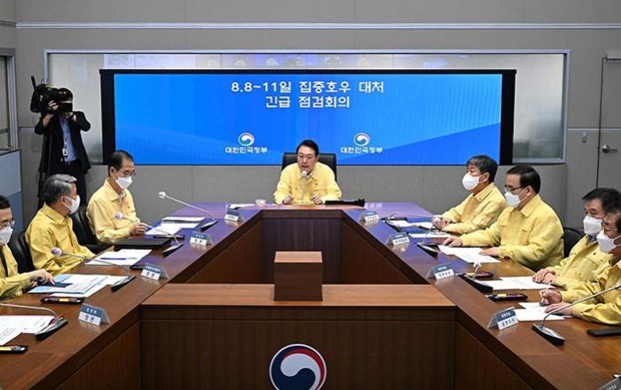 윤석열 대통령이 9일 집중호우 대처 관계기관 긴급 점검 회의를 열어 피해 상황을 점검하고 신속한 복구를 당부했다. 윤 대통령은 호우로 인한 인명 피해가 발생해 매우 안타깝다면서, 관계부처와 지자체 및 유관기관은 비상 근무체계를 강화하고 모든 역량을 인명피해 예방에