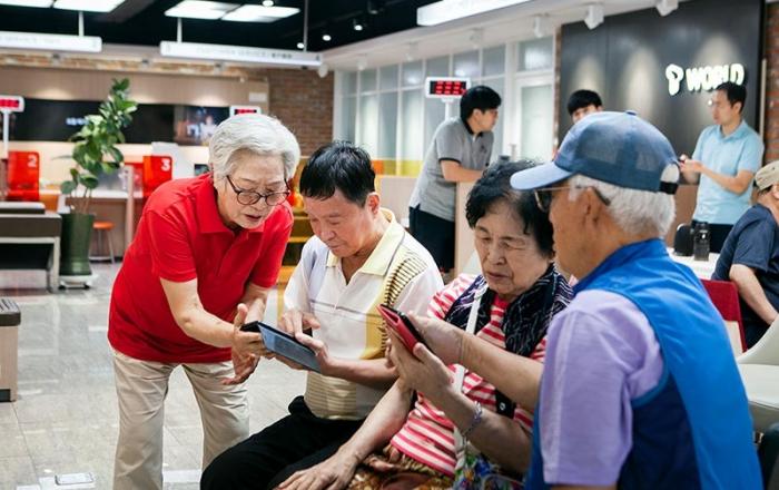 SK텔레콤 T월드 매장에 7명의 ‘어르신 스마트폰 강사’가 떴다.SK텔레콤이 어르신 등을 대상으로 선보였던 ‘알기쉬운 스마트폰 교실’에서 우수 수강자 중 7명이 교육 과정을 거쳐 이번에 ‘스마트폰 시니어 강사’로 변신한 것.SK텔레콤은 지난해 말부터 운영 중인 어르신