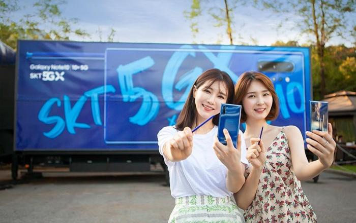 SK텔레콤 이 20일 오전 서울 올림픽공원에서 ‘SK텔레콤 5GX-갤럭시 노트10 개통행사’를 성대하게 개최했다. 이날 행사에는 김연아, 홍종현, 최희 등 유명인들을 비롯해 SK텔레콤 이용 고객들도 대거 참석해 SK텔레콤의 갤럭시 노트10 개통을 축하했다.노트10 개통