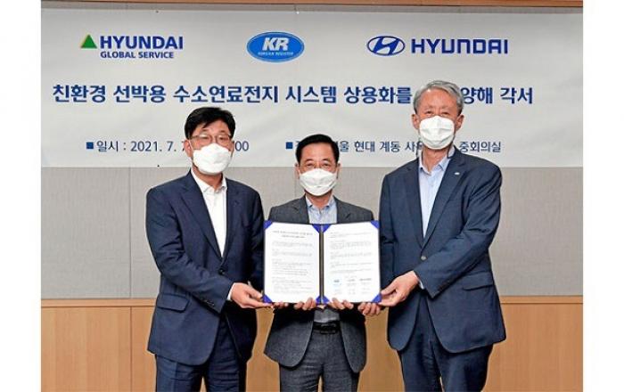 현대자동차가 현대글로벌서비스, 한국선급과 손잡고 국제 선급 승인 제품 개발 및 상용화를 통해 수소연료전지 선박 시장 진출에 나선다.현대자동차는 7일(수) 현대중공업지주 본사(서울시 종로구 율곡로 소재)에서 김세훈 현대자동차 연료전지사업부 부사장, 이기동 현대글로벌서비스