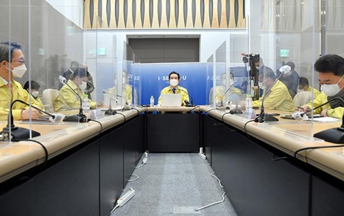 정세균 국무총리는 23일 “다가오는 연휴기간에 방역의 허리띠를 바짝 조여 확실하게 승기를 잡아야 하겠다”며 24일부터 시행되는 연말연시 방역강화 특별대책에 대한 국민의 협조와 동참을 요청했다.정 총리는 이날 서울시청에서 열린 코로나19 중대본 회의를