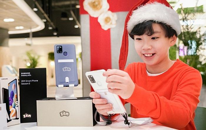 SK텔레콤이 크리스마스를 맞아 초등학교 고학년에 꼭 맞는 LTE 주니어폰 '갤럭시 A21s ZEM'을 오는 24일 단독 출시한다고 밝혔다.17일부터 22일까지 공식 온라인스토어 T다이렉트샵에서만 사전예약을 진행하며 예약 고객을 대상으로 24일 크리스마스 이브에 산타 배