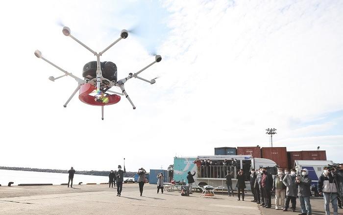 KT가 두산모빌리티이노베이션, 아주대학교 이국종 교수와 함께 제주도 서귀포항에서 수소드론을 활용한 인명 구조 훈련을 진행했다고 30일 밝혔다. 이날 훈련에는 서귀포해양경찰서도 참여했으며, 원희룡 제주지사를 비롯한 제주도청 관계자도 참관했다. 훈련 전 과정은 드론과