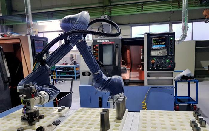 ㈜두산이 협력사 스마트공장 구축 지원 확대에 나선다.㈜두산은 올해 10개 협력사에 생산관리시스템(MES)을 적용해 생산현장의 디지털 전환을 돕고, 협동로봇 도입을 통해 생산라인 자동화 구축을 지원하기로 했다고 25일 밝혔다. ㈜두산은 중소벤처기업부 스마트제조혁신추진단의