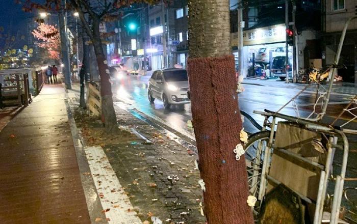 최근 도시 미관을 위해 나무 줄기에 짚 또는 뜨개질 된 옷을 입히는 것을 주위에서 많이 볼 수 있다. 이는 벌레를 유도하기 위한 ‘잠복소(해충포집기)’라고 불리지만 그 실효성에 대한 문제 제기가 계속되고 있다.이에, 산림청 국립산림과학원(원장 전범권)은 겨울철 가로수의