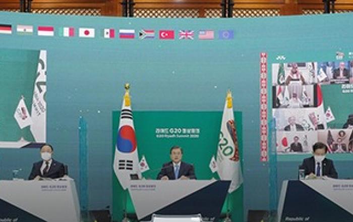 문재인 대통령은 21일 코로나19와 관련해 “국제연대와 협력이 가장 절실한 때”라고 강조했다.문 대통령은 이날 화상으로 열린 세계 최상급 경제협의체인 G20 정상회의 첫날 제1세션 선도발언에서 “지금 인류에게는 희망이 필요하다”며 이 같이 말했다.▲ 문재인 대통령이 지