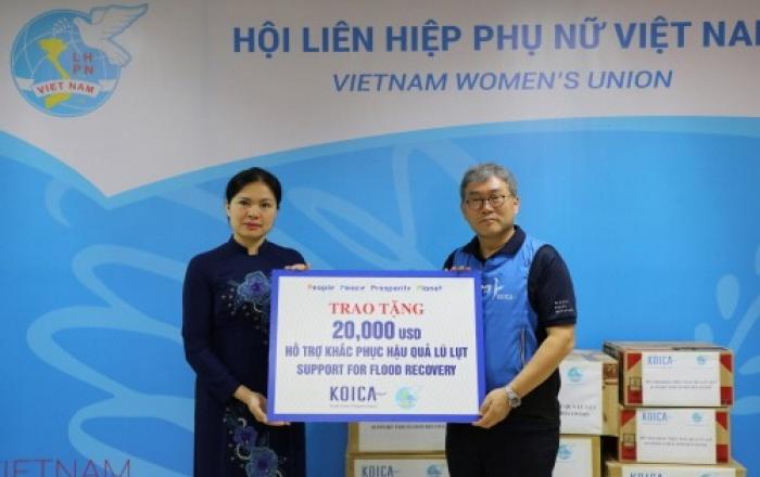 대한민국 개발협력 대표기관 코이카(KOICA·한국국제협력단)가 26일 오후(현지 시각) 베트남 여성연맹 내의 코이카 동창회와 함께 베트남 중부지역 홍수피해 확산으로 어려움을 겪고 있는 취약계층을 지원하기 위해 이만 달러 상당의 긴급구호 물품을 지원했다.이번 긴급물품 지