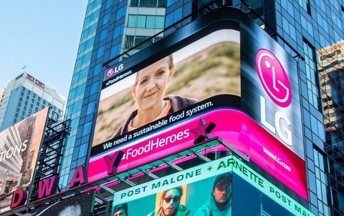 LG전자가 美 뉴욕 맨해튼 타임스스퀘어에 있는 전광판에서 기아 문제 해결을 위한 메시지를 전했다. LG전자는 현지시간 15일부터 3일간 타임스스퀘어 전광판에서 국제연합식량농업기구(FAO, Food and Agriculture Organization of the Unit