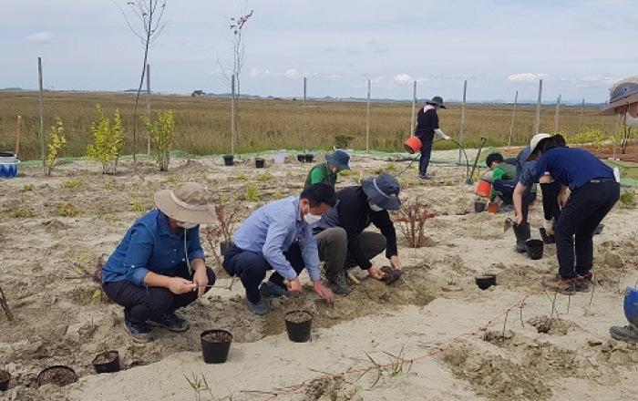산림청은 한국수목원관리원과 함께 23일 새만금수목원 조성 예정지에 멀구슬나무, 황근 등 염분과 바람에 저항성이 있는 식물 중 120종 2,700본을 심었다.이는 산림청과 한국수목원관리원이 2019년부터 진행하고 있는 ‘새만금수목원 예정지 생육 적응성 및 생육 기반 연구