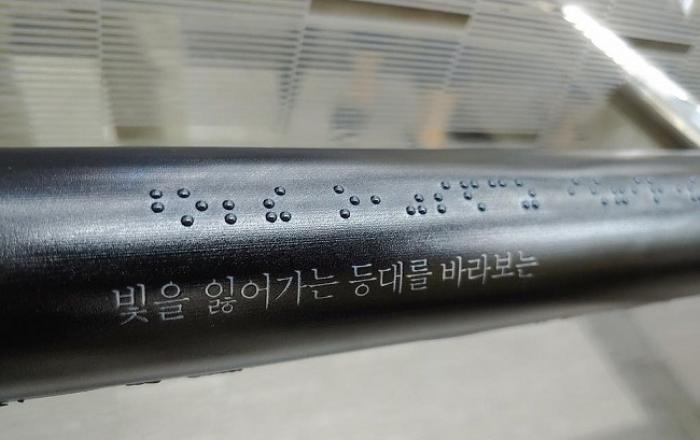 인천교통공사는 5일 인천지하철 1호선 경인교대입구역에 전국 최초로 시각장애인을 위한 ‘핸드레일형 점자시(詩) 촉지판’을 설치했다고 밝혔다.전국 많은 역엔 스크린도어와 미디어를 통해 각종 문화 컨텐츠 보급이 활성화 되고 있지만 앞을 보기 어려운 시각장애인을 위한 문화콘텐