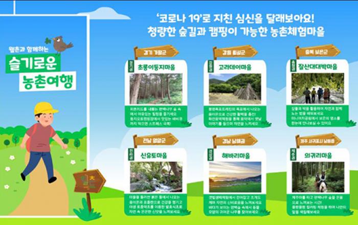 농림축산식품부와 한국농어촌공사는 코로나19로 지친 심신을 달래고 힐링하기 좋은 ‘농촌체험휴양마을’ 6곳을 13일 선정·발표했다. 이번에 선정된 ‘농촌체험휴양마을’은 ▲경기도 가평군 초롱이둥지마을 ▲강원도 횡성군 고라데이마을 ▲충청북도 보은군 잘산대대박마을 ▲전라남도