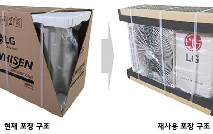 전자업계가 제품을 운송할 때 다회용 포장재를 쓰는 시범사업을 펼치며 자원순환사회 실현에 적극 동참한다. 환경부는 8일 경남 창원에 위치한 LG(엘지)전자 R&D센터에서 엘지전자, 엘지디스플레이, 한국포장재재활용사업공제조합과 ‘포장재 재사용 시범사업을 위한 업무