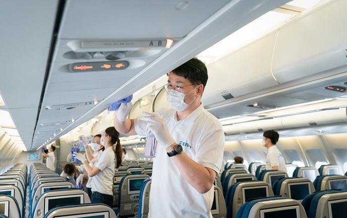 대한항공은 6월 29일 오전 서울 강서구 대한항공 본사 격납고에서 임직원이 직접 기내 소독 작업을 실시했다. 이날 소독 작업은 대한항공 임직원들이 직접 손걸레로 닦아내며 코로나19 상황에서 항공기에 탑승하는 승객들과 공감하는 한편, 안전한 기내 환경을 조성하겠다는 임직