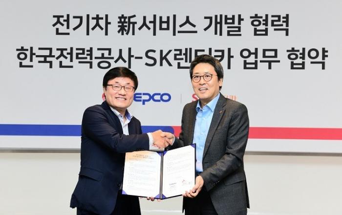 한국전력과 SK렌터카는 6월 25일(목)에 전기 렌터카 충전서비스를 개발하고자 “전기차 신서비스 개발협력 MOU"를 체결했다.주요 협력내용으로 △한전 전기차 충전기의 제공 △스마트 충전1) , V2G2) 등 차세대 충전서비스 개발 등을 협력하여 추진하기로 했다.한전은