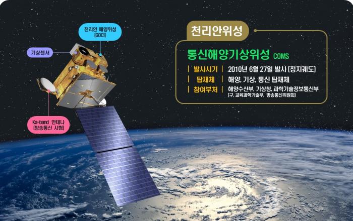 해양수산부는 6월 27일(토) 세계 최초의 정지궤도 해양관측위성인 천리안 1호의 발사 10주년을 맞이한다고 밝혔다. 지난 2010년 6월 27일 발사된 천리안 1호는 해양수산부와 과학기술정보통신부, 기상청의 협력 사업으로 개발된 정지궤도 위성으로, 세계 최초로 해양·