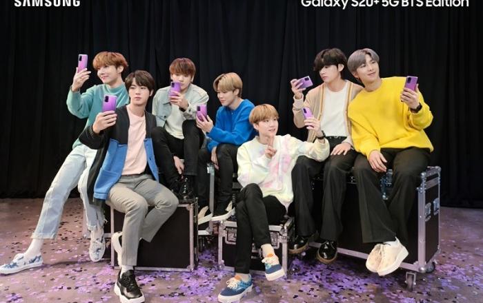 삼성전자가 방탄소년단(BTS)과 협력해 ‘갤럭시 S20+ BTS 에디션’과 ‘갤럭시 버즈+ BTS 에디션’을 선보인다. 공식 출시는 7월 9일이다.‘갤럭시 S20+ BTS 에디션’은 퍼플 색상에 무광의 헤이즈 공법이 적용되어 보는 각도에 따라 다양한 색감으로 보이는 신