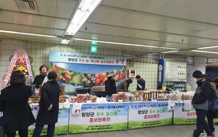 서울 지하철 주요 역사에 장마당이 열린다. 횡성 안흥찐빵·완도 김·상주 곶감·여수 갓김치 등 우수한 품질을 자랑하는 지역 농산물과 특산물을 멀리 가지 않더라도 지하철 내에서 편리하게 구매할 수 있다.▲ 청양군 우수 농산물 직거래 반짝매장 장터 행사 사진직거래 장터는 2