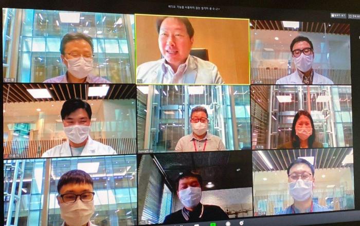 최태원 SK회장이 코로나19 백신 개발 등 어려운 여건 속에서 최선을 다하고 있는 구성원들을 격려하는 한편 사회적 역할도 다해줄 것을 당부했다.SK에 따르면 최 회장은 지난 27일 경기 성남시 판교 소재 SK바이오사이언스에서 근무중인 백신 개발담당 구성원들과 화상으로