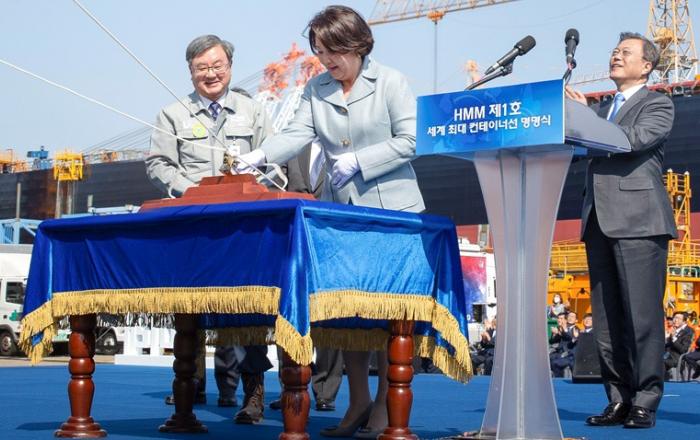 해양수산부는 4월 23일(목) 대우조선해양 옥포조선소(경남 거제)에서 세계 최대 컨테이너 선박 ‘에이치엠엠 알헤시라스호(이하 알헤시라스호)’의 명명식을 개최하였다.명명식에는 문재인 대통령 내외를 비롯하여 홍남기 경제부총리, 문성혁 해양수산부 장관, 은성수 금융위원장,
