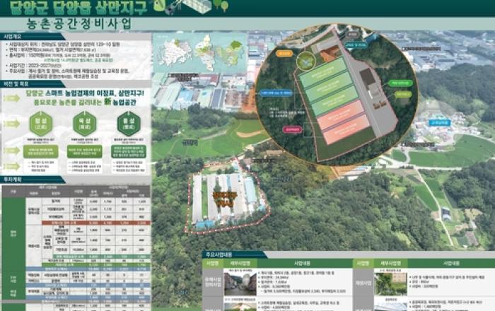 전라남도는 농림축산식품부의 농촌 공간정비사업 2023년 3차 공모에 담양 삼만지구, 해남 금호지구가 선정돼 국비 138억 원을 확보했다고 밝혔다. 농촌 공간정비사업은 농촌의 정주 환경을 악화시키는 마을 인근의 공장, 빈집, 축사 등 유해시설을 정비해 주거·서비스·일
