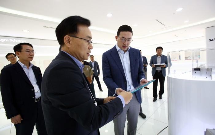 구광모 ㈜LG 대표가 29일, LG의 대표 소재·부품 R&D 현장인 대전 LG화학 기술연구원을 방문했다. 지난달 LG전자 소재/생산기술원을 방문해 제조와 생산 역량을 높이기 위한 장비 기술 개발과 전략 등을 논의한 데 이어, 두 달 연속 LG의 소재?부품?장비