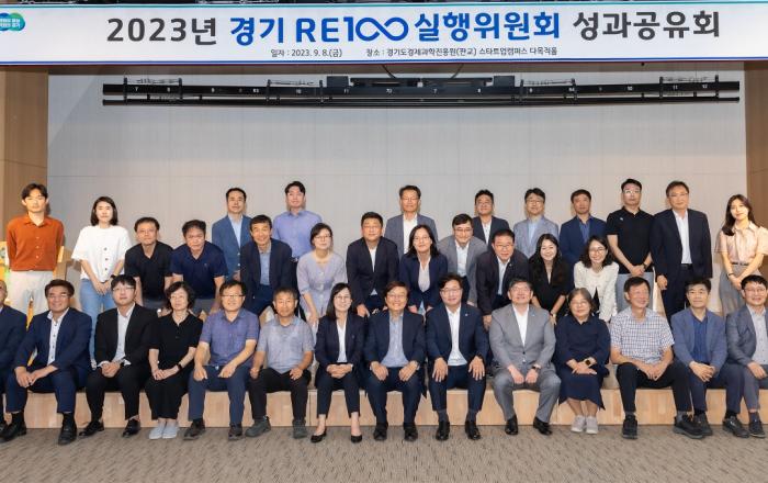 경기도가 ‘경기 RE100’ 달성을 위해 신재생에너지 정책 추진성과와 애로사항, 제도개선 방향 등을 공유하고 이에 대한 전문가 의견을 듣는 자리를 마련했다. 경기도는 환경에너지진흥원과 경기 RE100 실행위원회 성과공유회 및