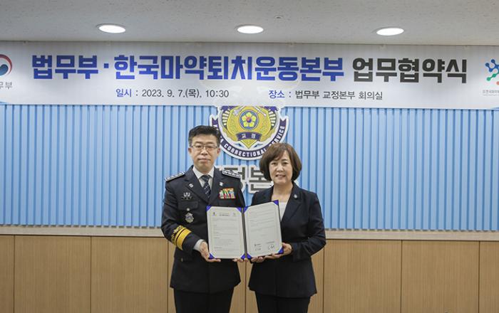 법무부와 한국마약퇴치운동본부가 마약류 사범에 대한 협력체계를 구축했다. 법무부와 한국마약퇴치운동본부는 지난 7일 법무부 교정본부 회의실에서 이 같은 내용을 골자로 하는 업무협약(MOU)을 체결했다고 밝혔다. 이번 업무협약은 마약류 사범에 대한 법무부의 교정시설 내 치료