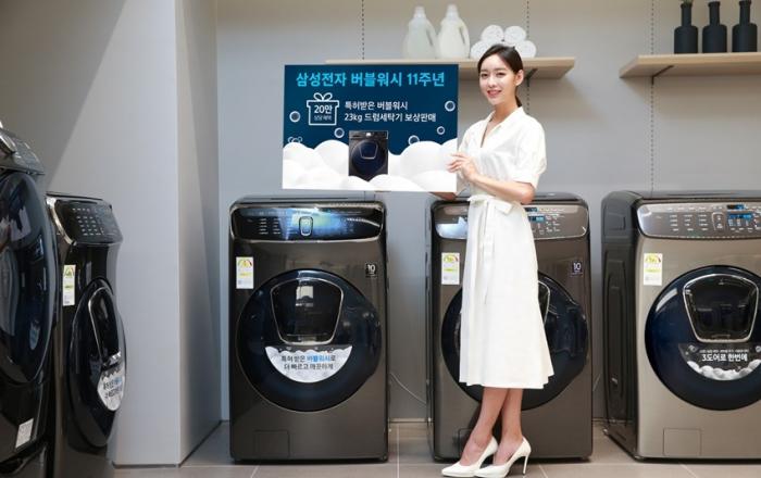삼성전자가 2008년 처음으로 도입해 삼성 세탁기만의 차별화된 기술로 사랑받아 온 ‘버블워시’ 탄생 11주년을 기념해 7월 31일까지 세탁기 보상 판매를 진행한다.소비자는 버블워시 기술이 탑재된 23kg 대용량 드럼세탁기 신제품을 구매하고 기존에 사용하던 구형 세탁기를