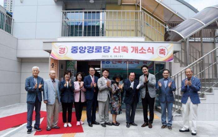 경기 의정부시는 지난 28일 '중앙경로당 신축 개소식'을 가졌다. 행사에는 김동근 시장을 비롯해 국회의원 및 시의원, 대한노인회 의정부시지회장, 경로당 회원 등 60여 명이 참석했다. 행사는 국민의례 및 기념사, 축사, 감사 인사, 현판 제막식 순으로 진행됐다.