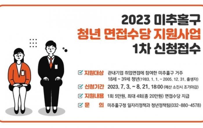 인천 미추홀구는 청년들의 취업 비용 부담 경감과 적극적인 구직활동 지원을 위해 인천시 최초로 청년 면접수당 지원사업을 시작한다. 미추홀구 청년 면접수당 지원사업은 고용 한파로 취업에 어려움을 겪고 있는 청년에게 적극적인 취업 활동을 지원하고자 구청장 공약사항으로 추