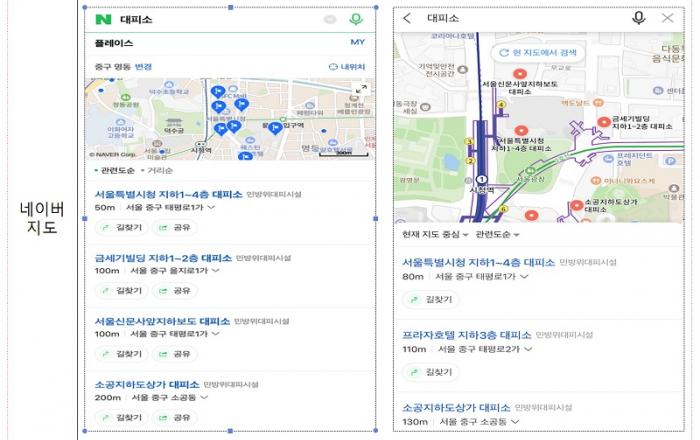 앞으로 내 주변 민방위 대피소 위치를 지도앱과 민간포털에서 쉽고 빠르게 찾을 수 있게 된다. 행정안전부는 30일 오전 11시부터 네이버 검색, 네이버지도, 카카오맵, 카카오검색, 티맵에서 민방위 대피소 위치를 검색하고 조회할 수 있게 된다고 29일 밝혔다. 그동안 민방