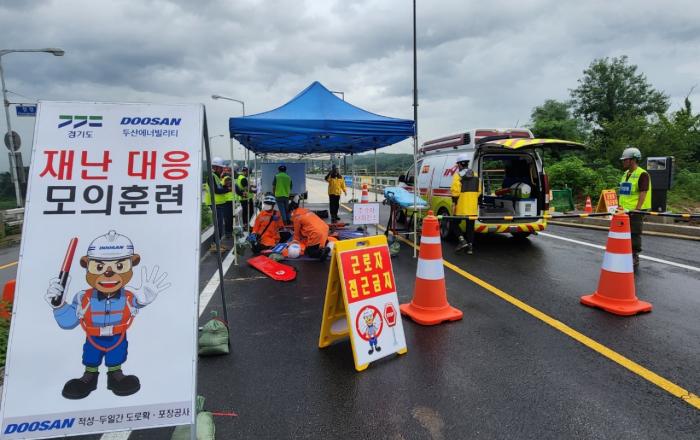 경기도건설본부는 29일 파주시 ‘적성~두일 지방도확포장공사’ 비룡대교 현장에서 재난 대응 모의훈련을 실시했다. 올해 재난 대응 훈련은 상‧하반기 각 1회씩 개최한다. 이번 상반기는 북부에서, 하반기에는 남부(도로건설과)에서 추진한다.