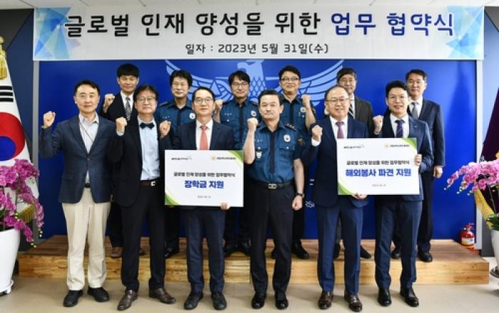 KT&G장학재단이 경찰대학 교육진흥재단과 지난 31일 '글로벌 인재 양성을 위한 업무협약(MOU)'을 체결했다. 업무협약식은 안홍필 KT&G장학재단 사무국장과 김두연 경찰대학 교육진흥재단 이사장 등이 참석한 가운데 충청남도 아산시에 위치한 경찰대학교에서 진행됐다.