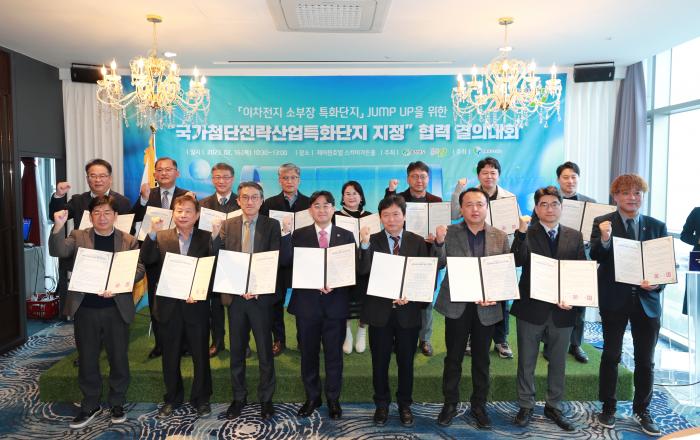 충청북도는 16일 오창(제이원호텔)에서 LG에너지솔루션, 충북대학교, 한국전자기술연구원 등 50명의 산학연 관계자가 참석한 가운데 ‘이차전지 첨단전략산업 특화단지 지정’ 전략을 공유하고 연대와 협력을 위한 결의대회를 개최했다. 이날 행사는 충북도 김명규 경제부지사와